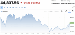 - The Dow closed down -64 points (-0.14%) with the S&P 500 flat and the Nasdaq up +0.33%.