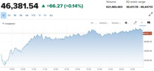 - The Dow closed up +66 points (+0.14%) with the S&P 500 up 0.44% and the Nasdaq up +0.70%