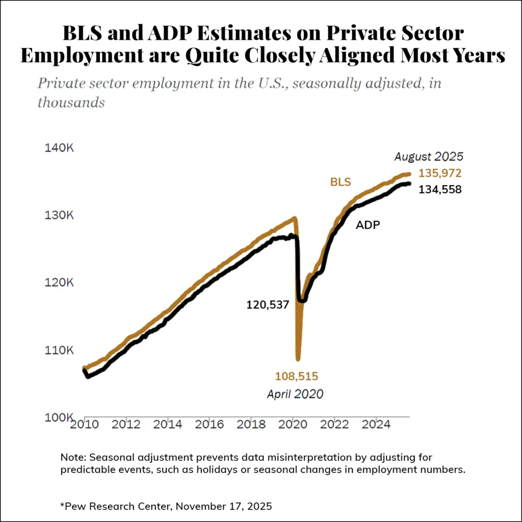 While we have been in this holding pattern with governmental job data (most notably the monthly BLS data), various private-sector data points have become more important than ever. Leading that charge has been the ADP Private Payrolls data. The largest payroll provider in the nation, they have as much real-world data as anyone on W-2 employees actually on a company’s payroll (because they generate the paychecks). How closely correlated has their private sector data been to the data we usually get from the BLS? Well, quite correlated, actually …