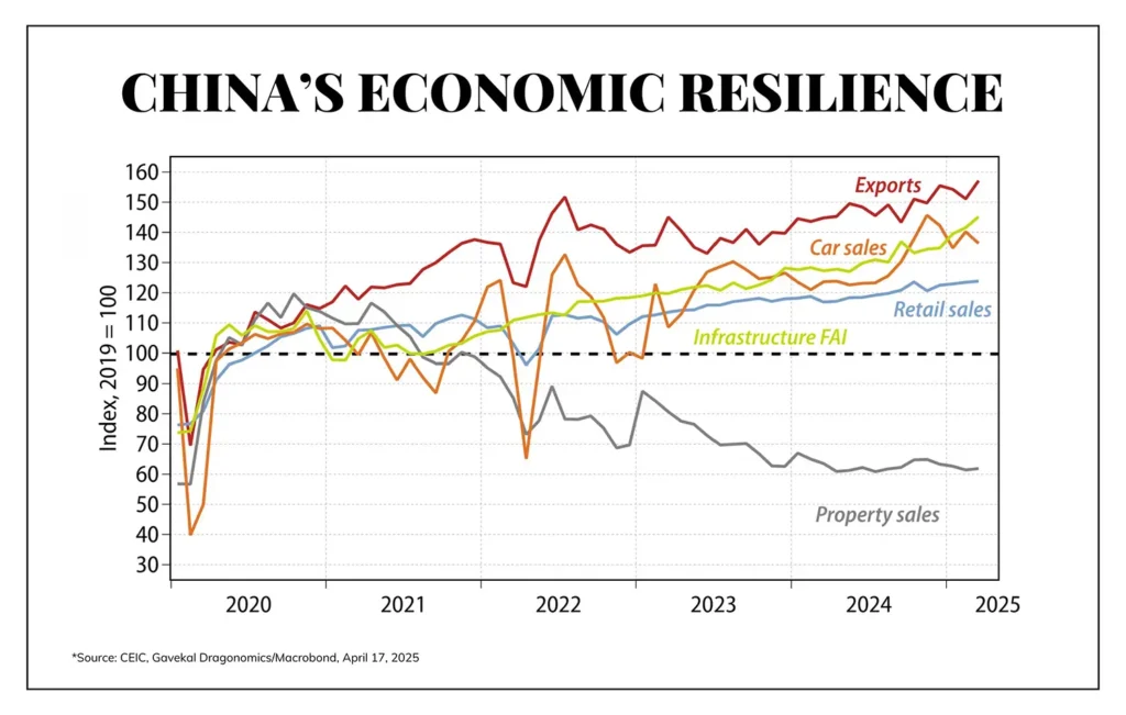 China’s property market is the problem. The rest of their economy paints a different picture. But deflationary busts of inflationary bubbles do a lot of collateral damage. We should know!