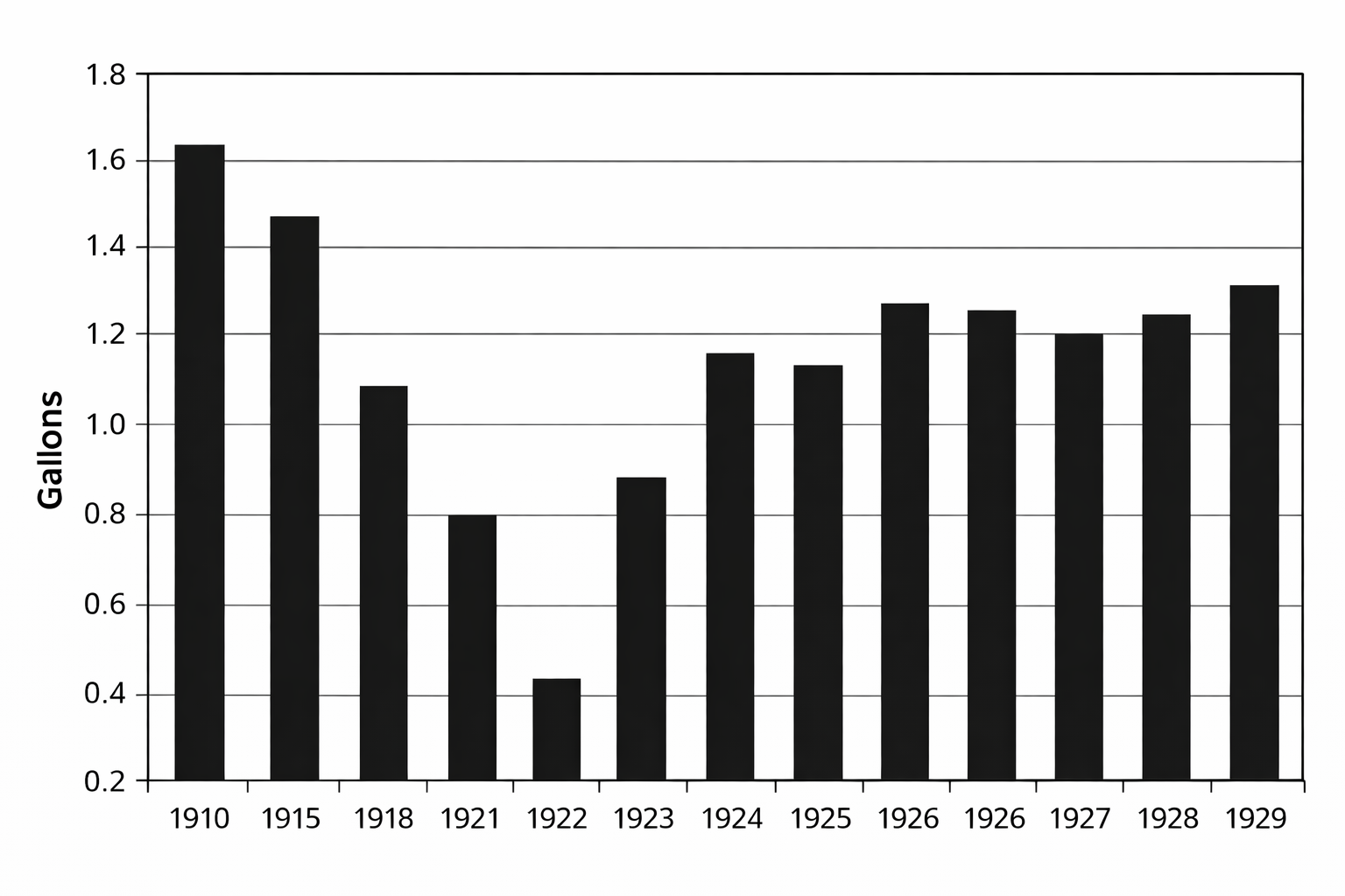 Per Capita Consumption of Alcoholic Beverages (Gallons of Pure Alcohol) 1910–1929