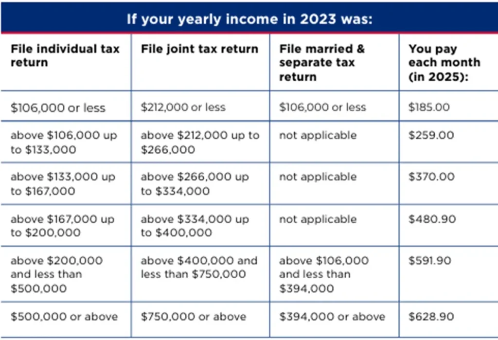 IRMAA stands for Income-Related Monthly Adjustment Amount. A higher MAGI can push you into a higher IRMAA bracket, increasing your Medicare B and D premiums by thousands of dollars each year. See the table below from www.medicare.gov regarding Medicare Part B rates.